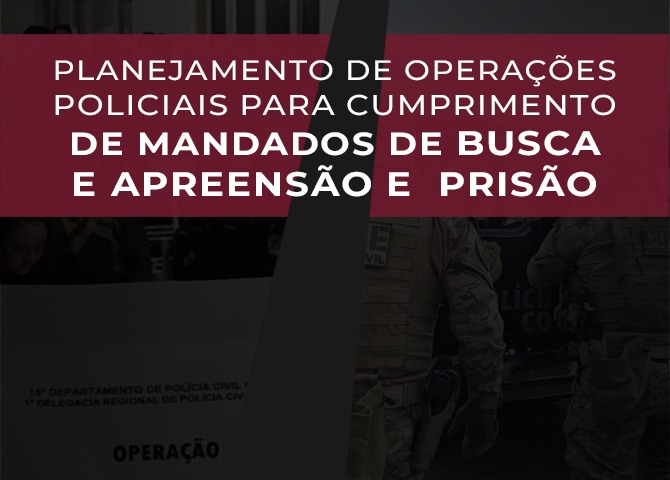 O objetivo do curso é apresentar aos alunos o passo a passo de uma operação policial voltada ao cumprimento de mandados de busca e apreensão e respectiva prisão.