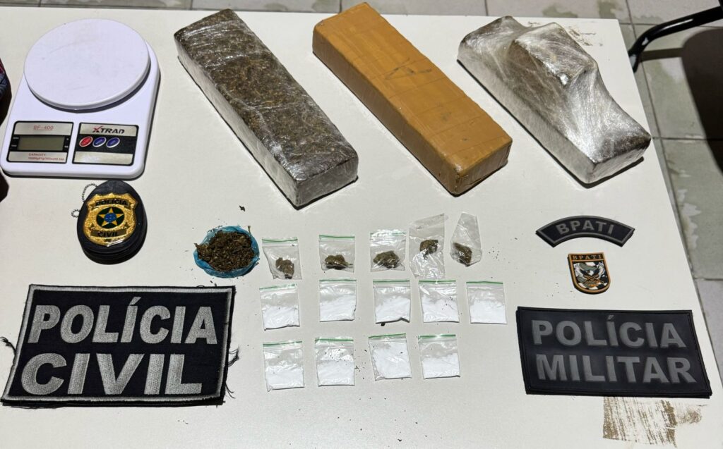 Ainda no local do fato, os policiais identificaram o odor de droga em um imóvel abandonado e, diante da situação de flagrante, adentraram o local. Lá, as equipes encontraram e apreenderam 3kg de droga, distribuídos em três tabletes, além de uma balança de precisão.