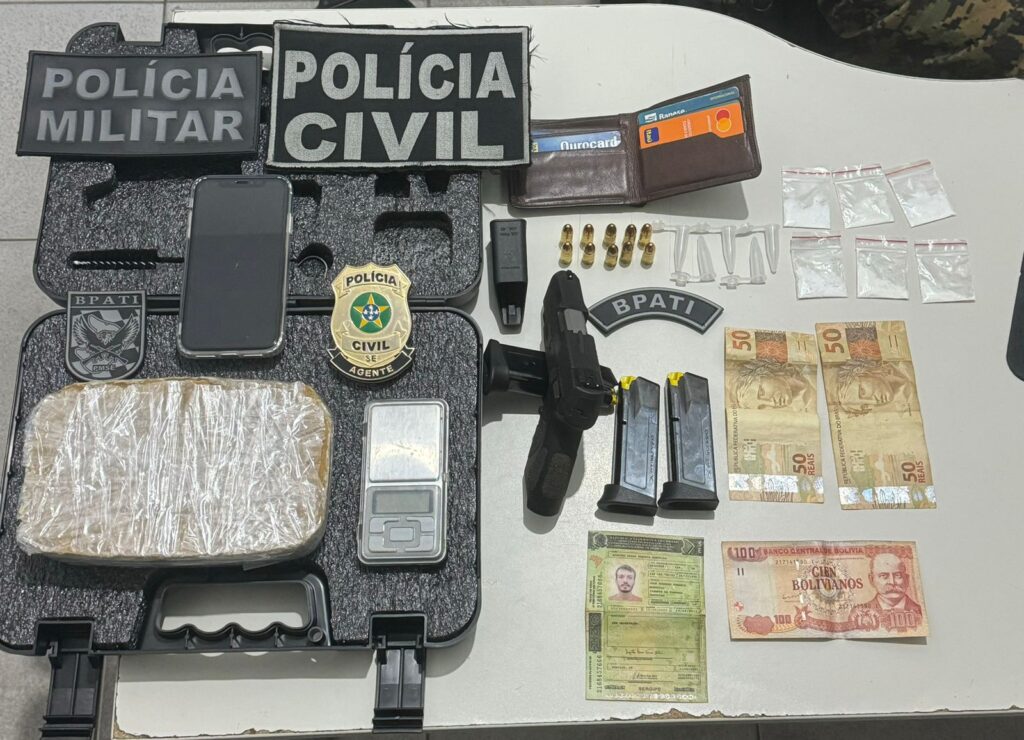 Durante trabalho integrado de combate ao tráfico de drogas no município de Lagarto, nesta quinta-feira, 15, policiais civis e integrantes do Batalhão de Polícia de Ações Táticas do Interior (Bpati) prenderam um suspeito do crime e apreenderam um quilo de crack, uma pistola 9mm e munições. A ação ocorreu no bairro Loyola, na cidade lagartense.