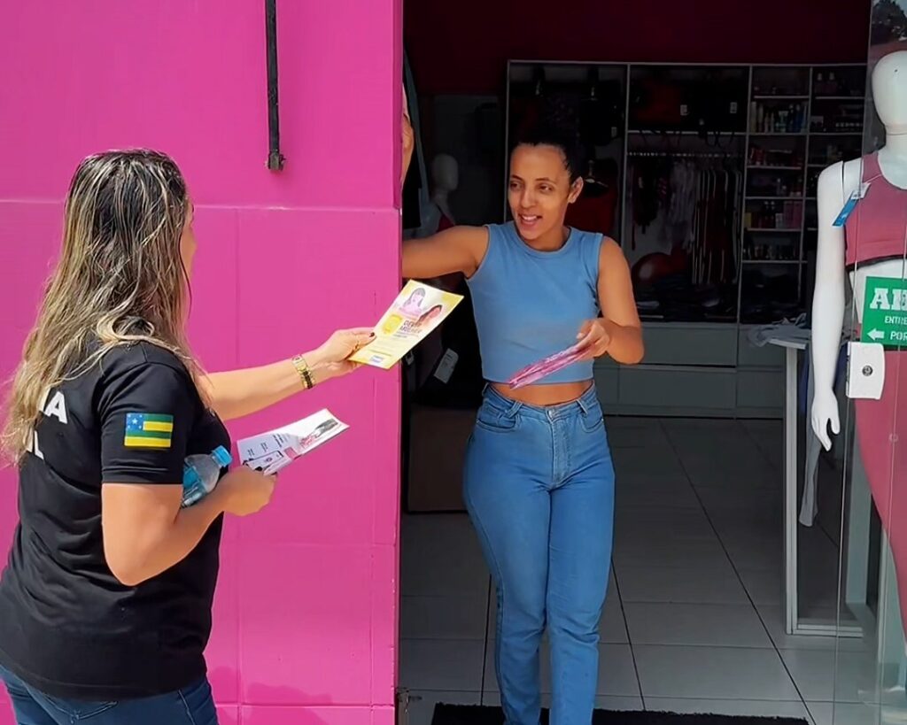 Na iniciativa, que percorreu ruas do Centro, profissionais das instituições envolvidas distribuíram materiais informativos e orientaram a população sobre os canais de denúncia e a rede de apoio para mulheres em situação de violência.