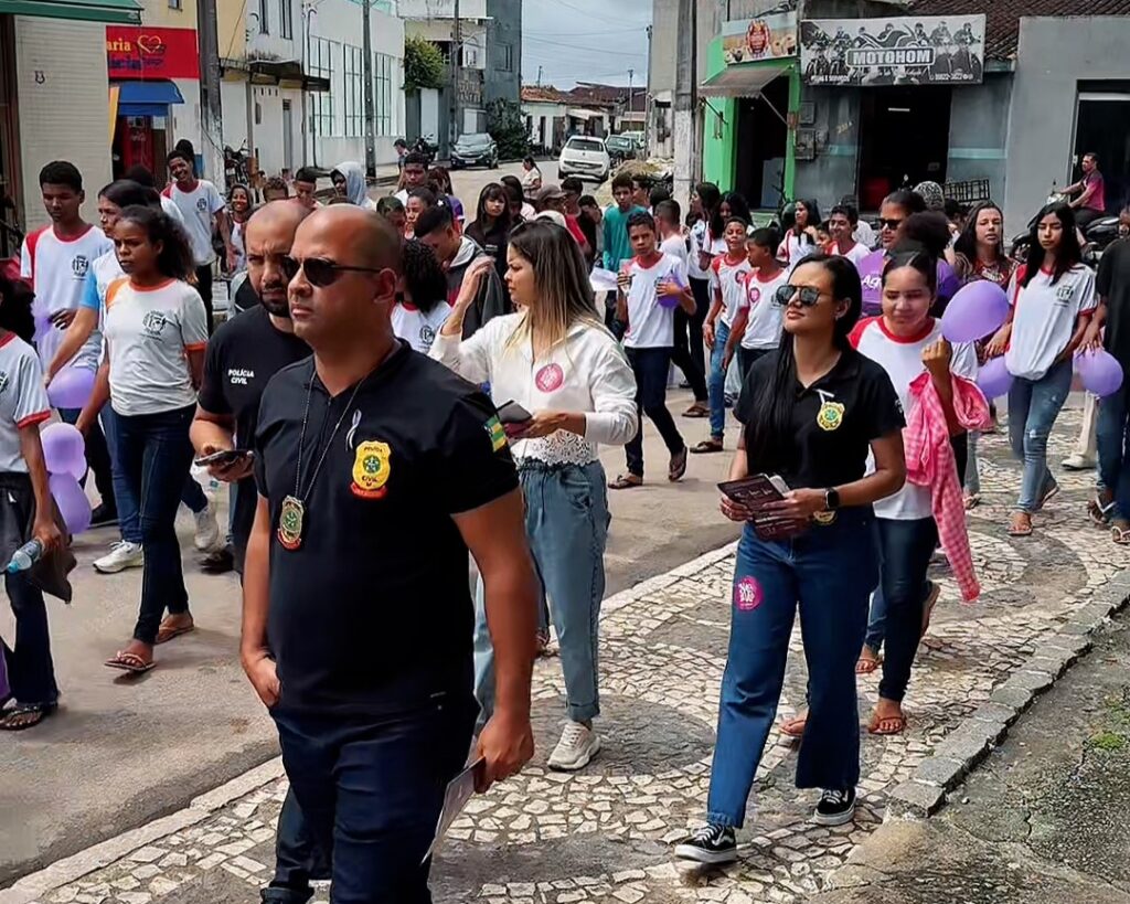 O ato contou com a presença de autoridades do município, servidores públicos, estudantes e representantes da sociedade civil, que percorreram as ruas vestindo roxo, cor símbolo da campanha nacional inspirada na Lei Maria da Penha.
