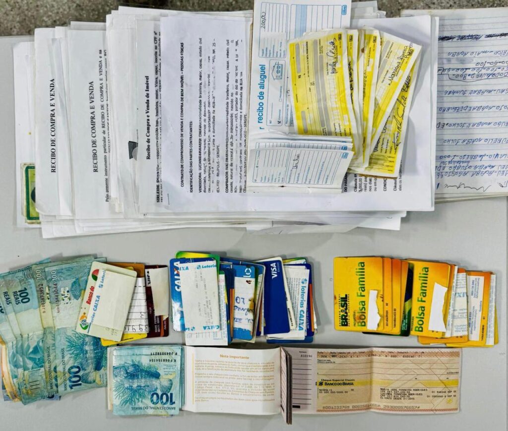 Entre os cartões apreendidos, havia unidades vinculadas ao programa Bolsa Família e outros benefícios destinados a idosos, confirmando as suspeitas da investigação. Também foram recolhidos recibos de compra e venda de imóveis utilizados como garantia de dívidas.