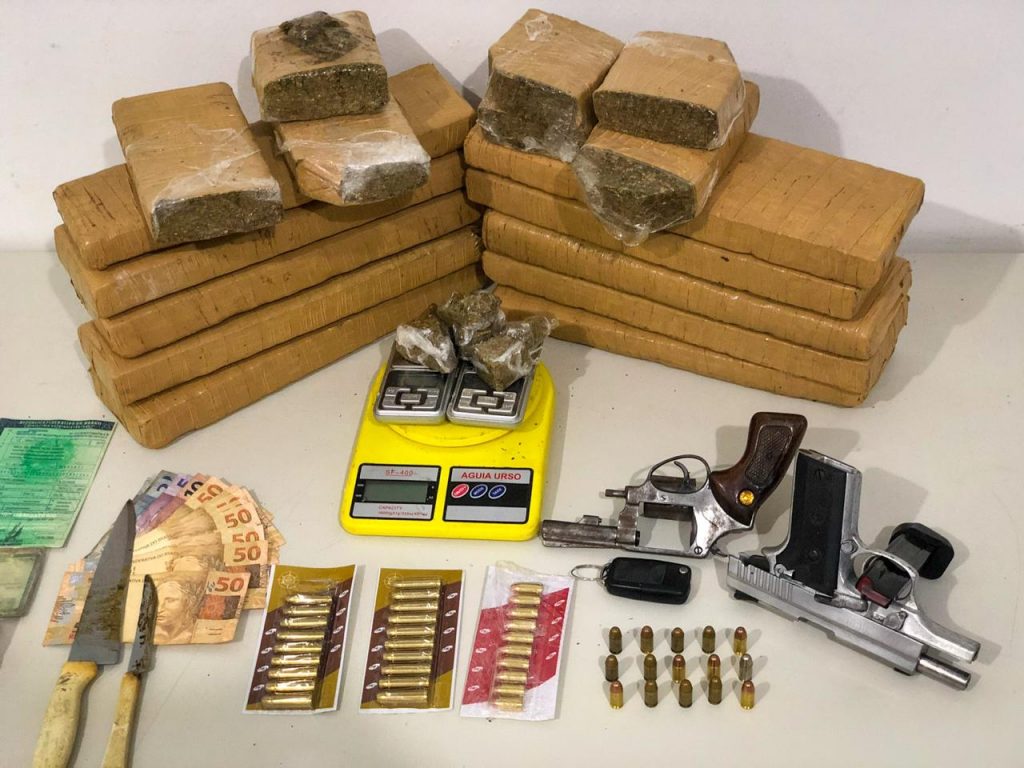 A ação policial também resultou na prisão de dois investigados por tráfico de drogas, após levantamento de informações sobre um veículo que estaria transportando a droga e sobre o possível local de entrega do material.