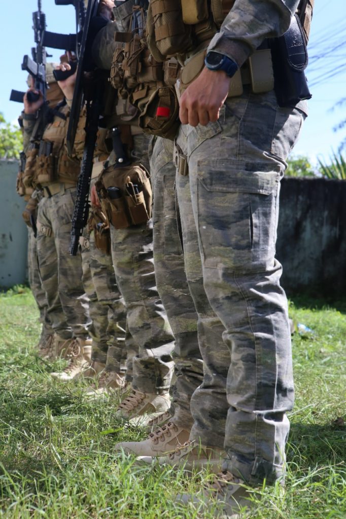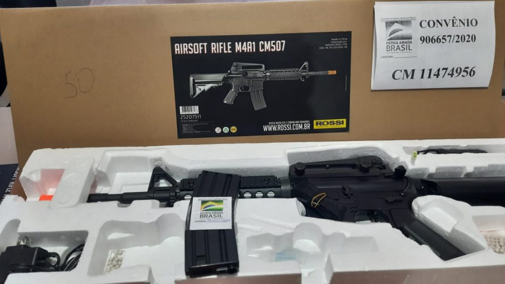 Dentre os itens já adquiridos estão botas, camisetas táticas preta manga longa, capacete balístico nível III-A com viseira e ajuste giratório, pares de coturnos táticos, camisa polo: modelo Padrão Nacional – Polícia Civil, pares de luvas Táticas pretas, kit tático, coturno tático preto impermeável cano médio, escudo balístico III-A, rifle de airsoft Aeg M4a1 Cm16 Raider-L e webcams.
