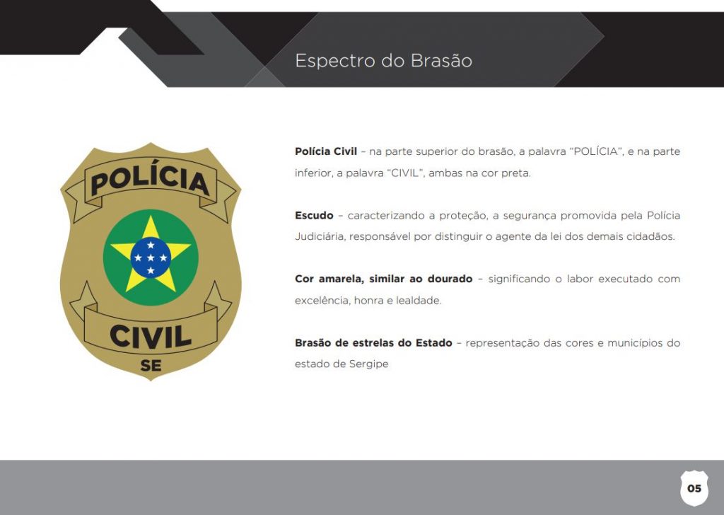 Já o artigo 3º proíbe símbolos, grafismos e vestimentas em cores e padrões não constantes no Manual de Identidade Visual da Polícia Civil do Estado de Sergipe, bem como a mesclagem de figuras, símbolos ou elementos gráficos com a Bandeira Oficial, ou ainda com o Brasão institucional da Polícia Judiciária Civil, de modo a não descaracterizar os símbolos oficiais e a identidade visual da Instituição.