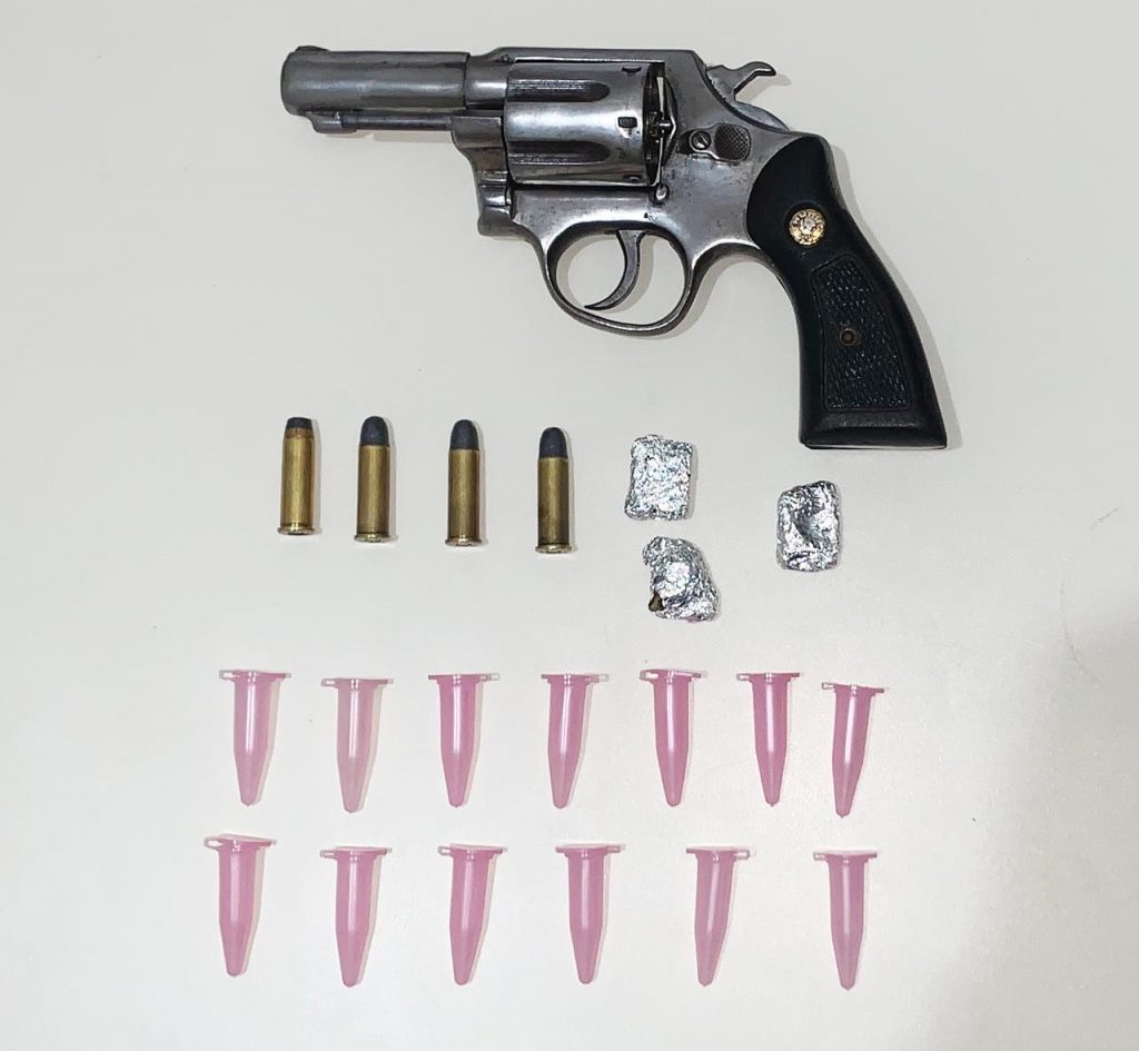 Nesta terça-feira, 8, agentes da Polícia Civil do município de Lagarto prenderam em flagrante um homem de 20 anos, suspeito de ter praticado os crimes de posse irregular de arma de fogo e tráfico de drogas. Com o investigado, foi apreendido um revólver calibre .38 com quatro munições, substância entorpecente e um caderno com anotações típicas do comércio de drogas.