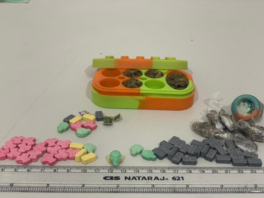 Ainda de acordo com as informações, no interior do automóvel, foram encontrados 56 comprimidos de ecstasy conehcido como “bala”, algumas unidades de selos de LSD, popularmente chamados de “doce” e cristais de MDMA, “Michael Dowglas”.
