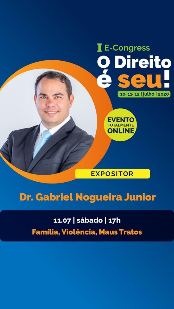O delegado Gabriel Nogueira, coordenador da Central de Flagrantes da Polícia Civil de Sergipe, participará do “I E-Congress – O Direito é seu”, com o seminário intitulado “Família, Violência, Maus Tratos”. O debate é um dos previstos no congresso on-line e ocorrerá às 17h, no próximo sábado, 11. O evento terá acessibilidade para todos os participantes.