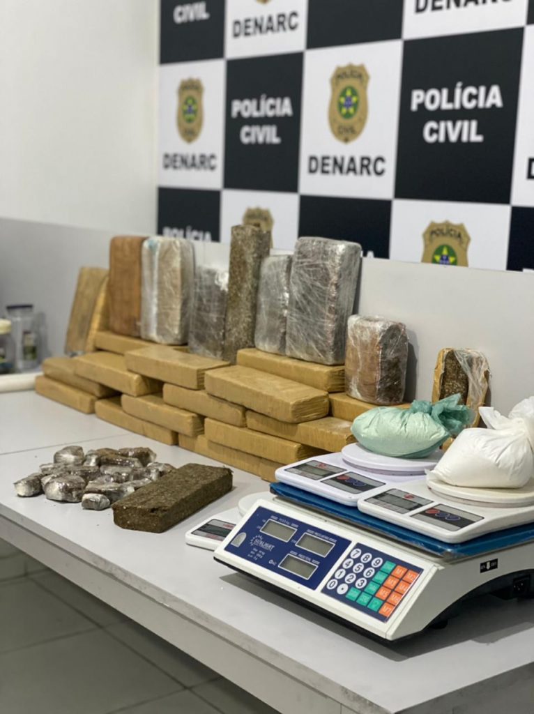 Junto com a maconha, com alto valor no mercado do tráfico, a polícia apreendeu cocaína e balança de precisão