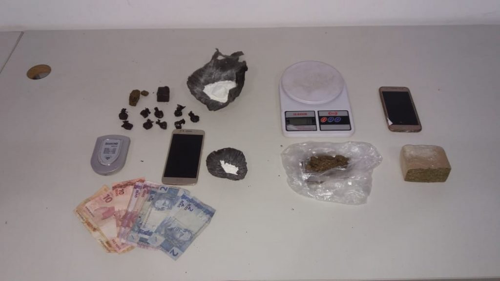 Os flagrados e o material apreendido foram conduzidos para a sede do Denarc, onde foram autuados por tráfico.No quintal, foram encontrados trouxas de cocaína e maconha, além de uma balança utilizada para acondicionar a droga.