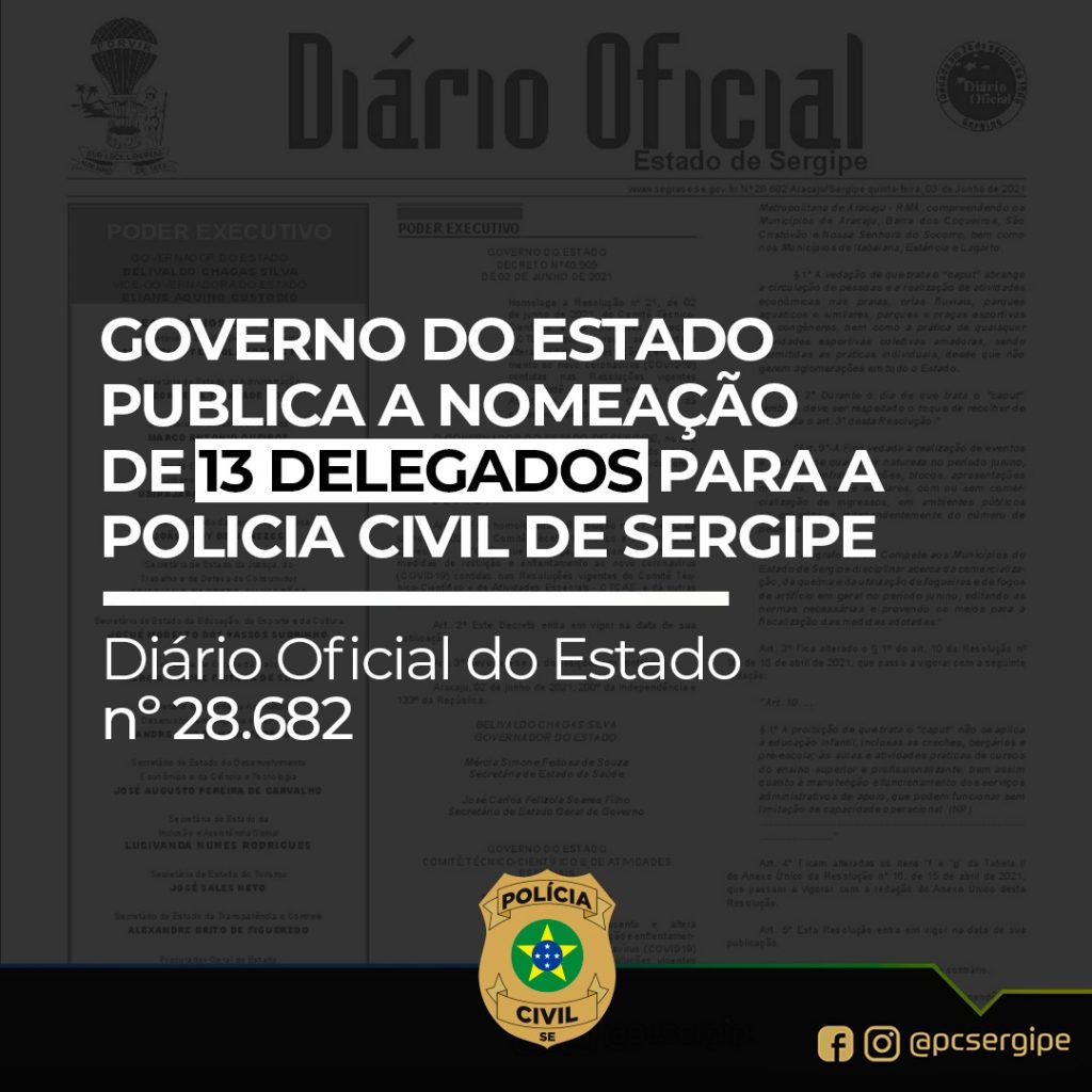 O Governo do Estado publicou a nomeação de 13 novos delegados que irão atuar no fortalecimento das ações de segurança pública da Polícia Civil. A publicação foi feita na edição nº 28.682 do Diário Oficial do Estado. Os delegados serão lotados na Coordenadoria de Polícia Civil do Interior (Copci).