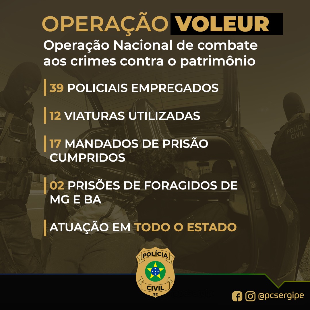 Operação Voleur: Polícia Civil de SE participa de operação nacional de repressão a crimes contra o patrimônio