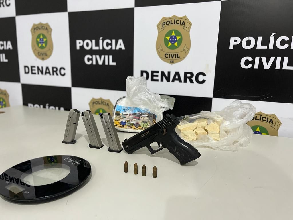 Material foi encontrado após denúncia anônima Policiais do Departamento de Narcóticos (Denarc) apreenderam um quilo de crack, aproximadamente meio quilo de cocaína e uma pistola de origem turca, de calibre 9mm. A apreensão ocorreu após denúncia anônima na tarde dessa quinta-feira (21), em Estância De acordo com as investigações, as informações apontaram um ponto de…
