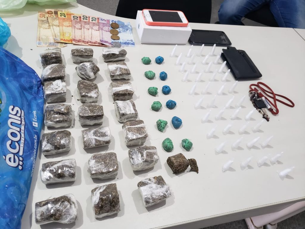 Na operação, foram apreendidos 41 pinos com substância entorpecente semelhante à cocaína, 35 pacotes de maconha prensada, uma motocicleta de cor vermelha (que era utilizada na entrega das drogas), e a quantia de R$ 158 em notas fracionadas.