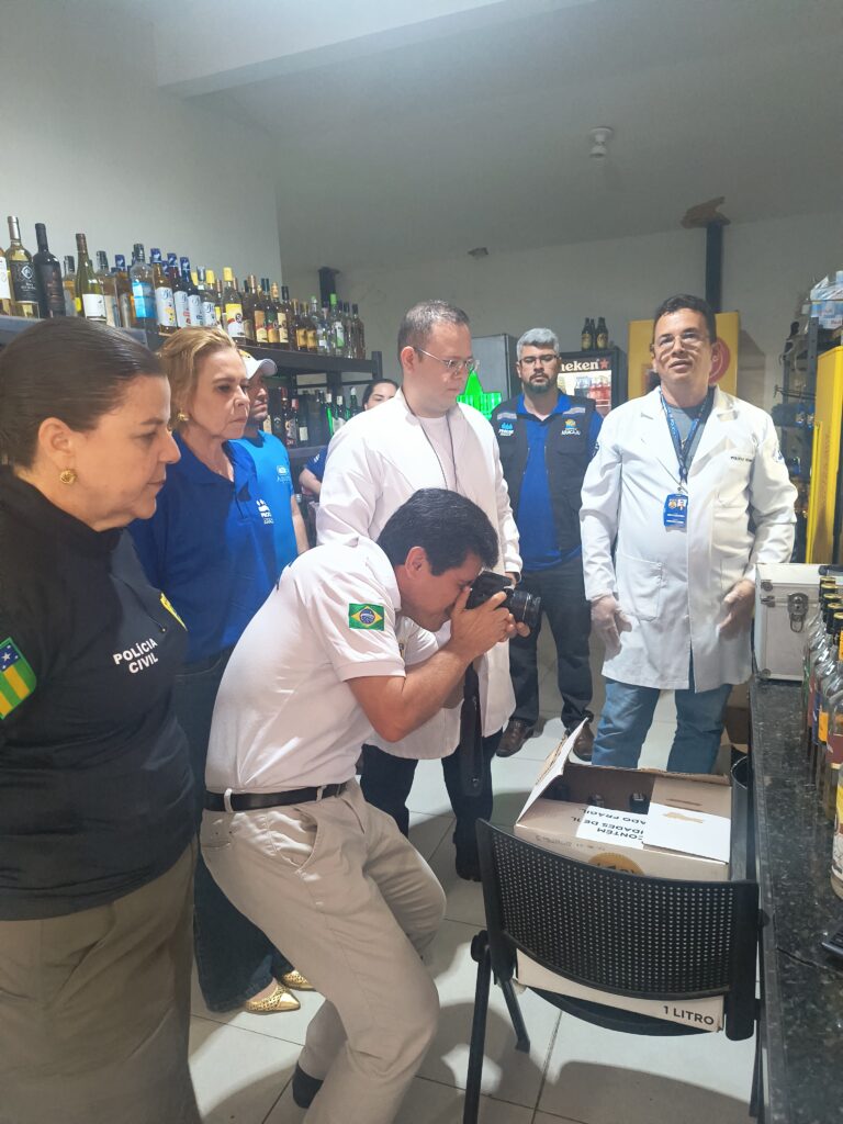 O Instituto de Análises e Pesquisas Forenses (IAPF) também atuou na ação. “A Polícia Científica se faz presente aqui no estabelecimento de bebidas em cooperação com a Polícia Civil, com o objetivo de verificar a presença de metanol em algumas bebidas. Então, foram encontrados alguns destilados abertos, fizemos uma amostragem e essas amostras vão ser analisadas no laboratório para justamente detectar ou não a presença do metanol”, falou o diretor do IAPF, perito criminal Kleber Willer.