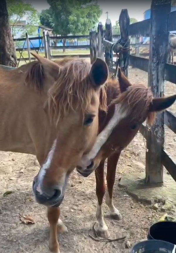 Durante a inspeção, os policiais encontraram os cavalos amarrados com cordas curtas, sob forte calor, sem acesso à água ou alimento. As condições observadas caracterizavam situação de negligência e sofrimento, motivando a imediata intervenção das equipes.
