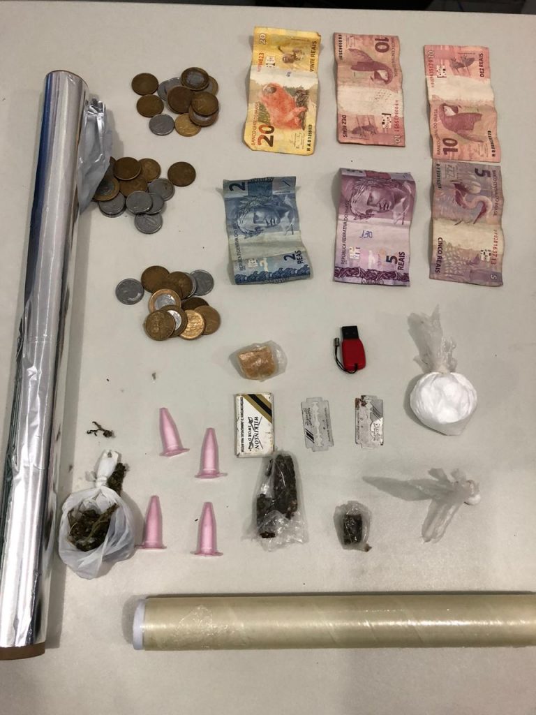 Com ele foram encontrados crack, cocaína e maconha, além de objetos para corte e embalagem de entorpecentes