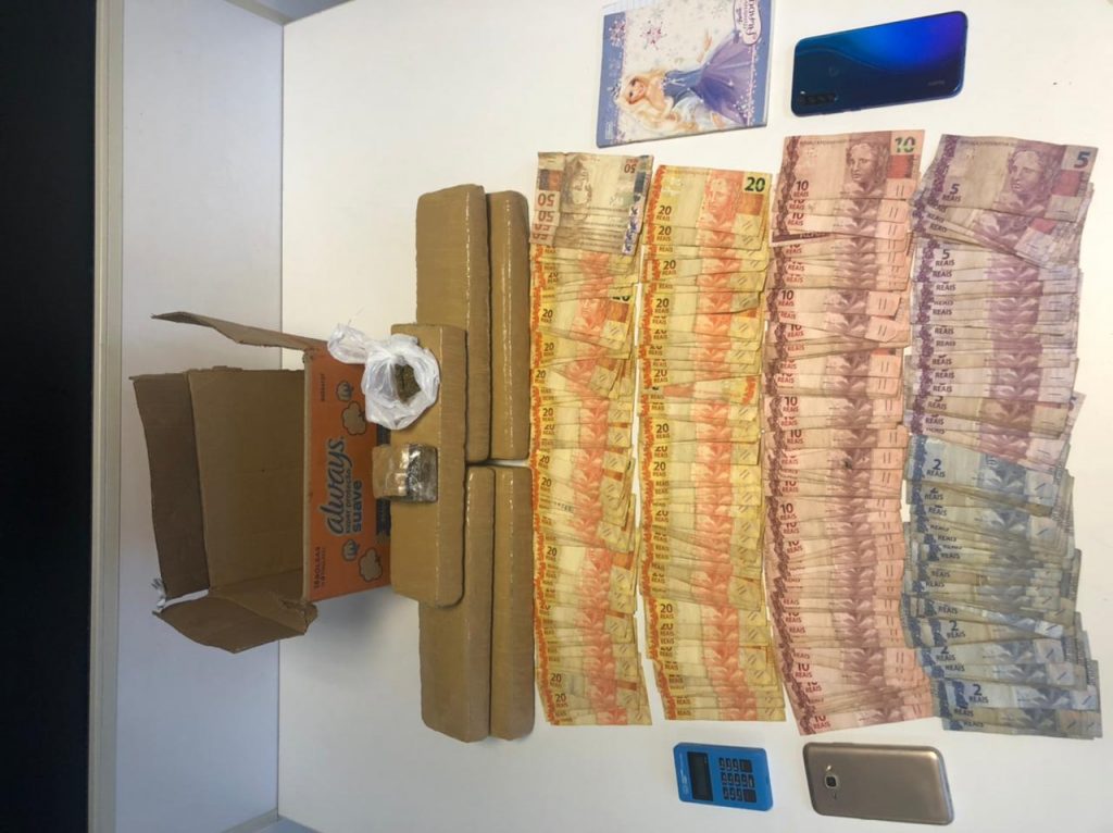Na ação policial, foram apreendidos cinco tabletes, pesando cerca de 1kg cada e avaliados em R$ 15 mil. Além do entorpecente, também foi apreendida a quantia de, aproximadamente, R$ 3 mil, em notas fracionadas, e uma máquina de cartão. Ela foi presa e já encontra-se à disposição da Justiça.