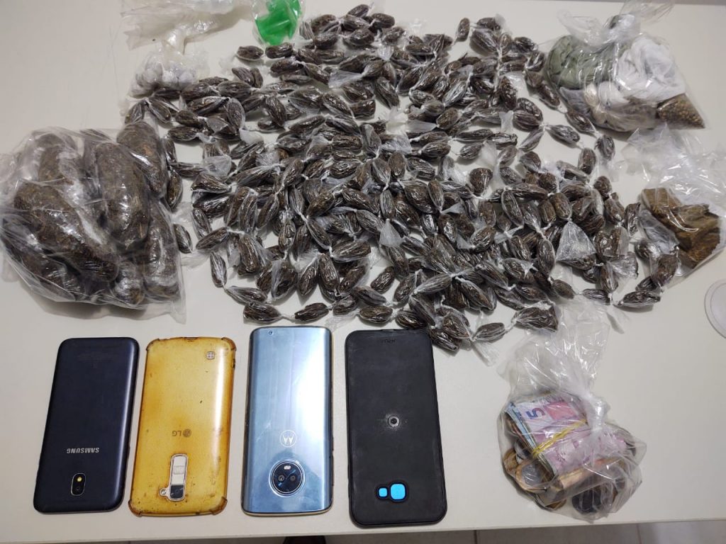 A prisão ocorreu no Conjunto Santo Antônio, Bairro Cidade Nova, tendo os policiais flagrado os suspeitos de posse de 331 “buchas” de maconha, além de outras dez embalagens maiores também contendo maconha, bolsas contendo sementes e a quantia em dinheiro de cerca de R$ 400,00.