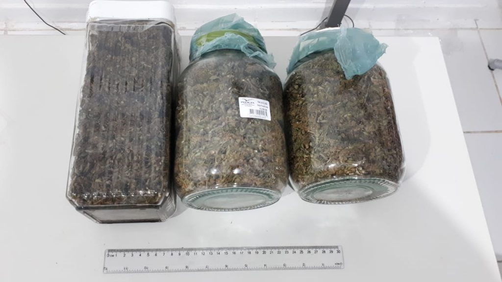 As investigações revelaram que a dupla era suspeita de ter alugado a residência exclusivamente para armazenar a maconha, do tipo “skunk”. Lá foram apreendidos cerca 1,2 kg de maconha (avaliada em mais de de R$ 16 mil), duas balanças digitais usadas para pesagem, dezenas de etiquetas com a expressão “skunk”, cadernos com a contabilidade do grupo criminoso, mais de 300 embalagens para acondicionamento das drogas e outros produtos que serão encaminhados para perícia.