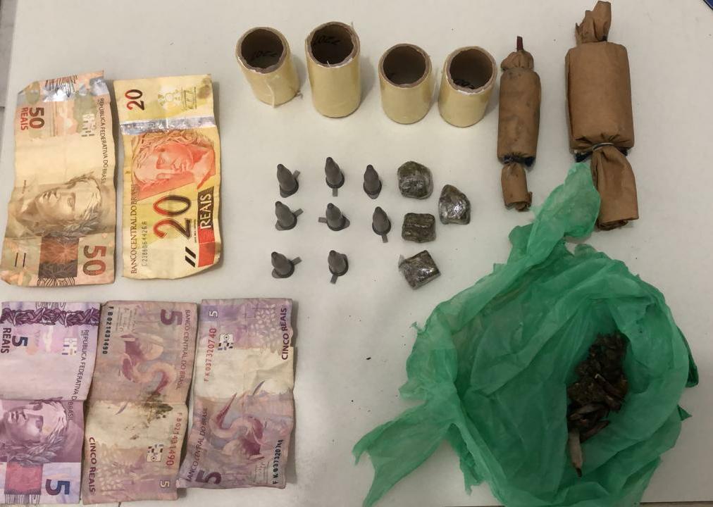 Após diligências, o tráfico foi constatado. Na ação policial, foram encontrados oito micro tubos (pinos) com substância análoga à cocaína, quatro papelotes de substância semelhante à maconha pronta para a venda, um pedaço de maconha, papel filme usado para embrulhar maconha e duas bombas usadas geralmente por traficantes para informar que chegou droga no local do comércio.