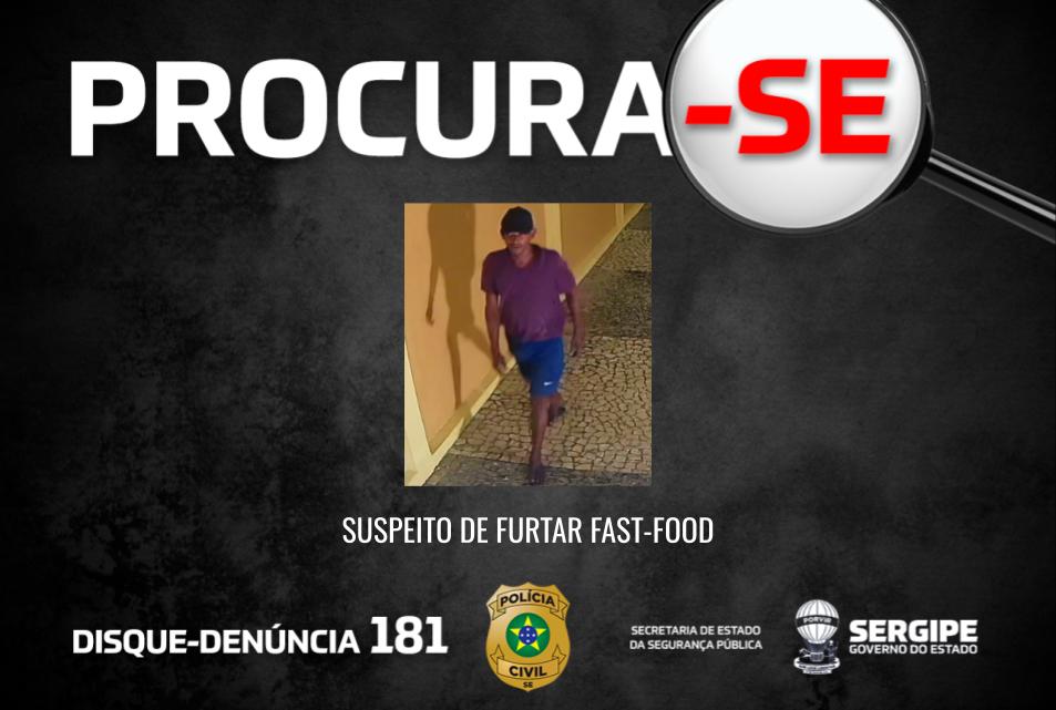 Em investigação conduzida pela Delegacia Especial de Turismo (Detur), a Polícia Civil divulgou a imagem do suspeito de furtar um cofre com cerca de R$ 3 mil de uma lanchonete fast-food localizada na Orla de Atalaia, na Zona Sul de Aracaju. A imagem foi divulgada nesta quinta-feira (6).
