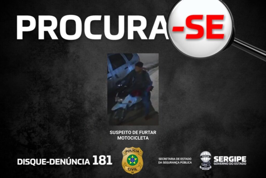 A Divisão de Roubos e Furtos de Veículos (DRFV) divulgou, nesta quinta-feira (21), a imagem do suspeito de furtar uma motocicleta em frente a uma academia localizada no bairro Jabotiana, na Zona Sul de Aracaju.
