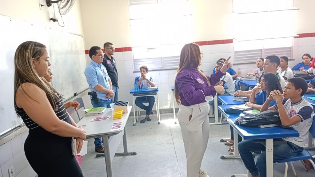 Em seguida, os representantes dos dois órgãos promoveram palestra no Centro Estadual Marechal Pereira Lobo, onde alunos e servidores puderam tirar dúvidas sobre o tema violência contra a mulher. Os agentes de polícia que participaram da ação estiveram coordenados pelo delegado Khertton Rafael, que também falou ao público.