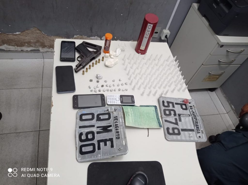 Após isso, as equipes elucidaram o local onde a arma de fogo utilizada no crime estava, mesma residência onde as motocicletas roubadas haviam sido escondidas. Em diligências ao local, a arma foi encontrada e apreendida, contudo as motos já não estavam mais lá, tendo sido encontradas apenas as placas dos veículos. Nessa residência, foi preso o terceiro envolvido, que é suspeito de ter emprestado a arma para o cometimento dos roubos e de ter receptado os veículos roubados, juntamente com a morada da casa”, explicou a polícia.