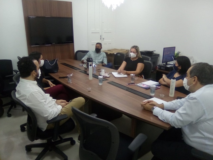 O Delegado-Geral da Polícia Civil, Thiago Leandro, se reuniu na manhã desta segunda-feira, 13, na sala de reuniões da Delegacia Geral, com a superintendente executiva da Secretaria de Estado da Saúde (SES), Adriana Menezes, e o médico infectologista da SES, Marco Aurélio Góes, com os delegados Rosana Feitas e Jonathas Evangelista, e a agente Rose Araújo, para definirem um novo canal de atendimento para policiais civis com sintomas da Covid-19.