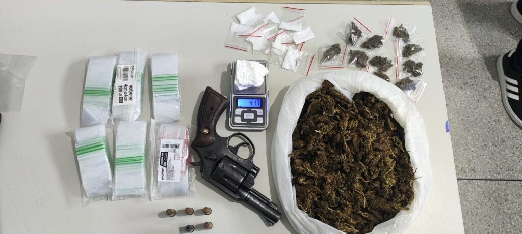 Durante a operação, foram apreendidos materiais semelhantes à cocaína e à flor da maconha, além de um revólver calibre .38 e cinco munições intactas do mesmo calibre. Os suspeitos foram levados à delegacia da cidade, onde foram autuados em flagrante pelos crimes identificados.
