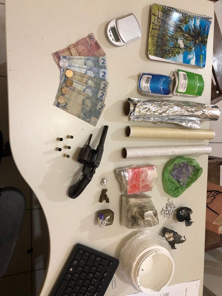 Durante a ação, foi encontrada uma grande quantidade de entorpecentes e um revólver