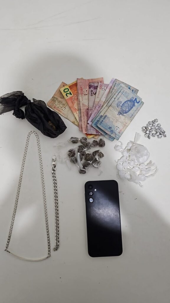 Durante a abordagem e busca pessoal, os policiais encontraram com o suspeito substâncias análogas a crack, maconha e cocaína, além de uma quantia em dinheiro.