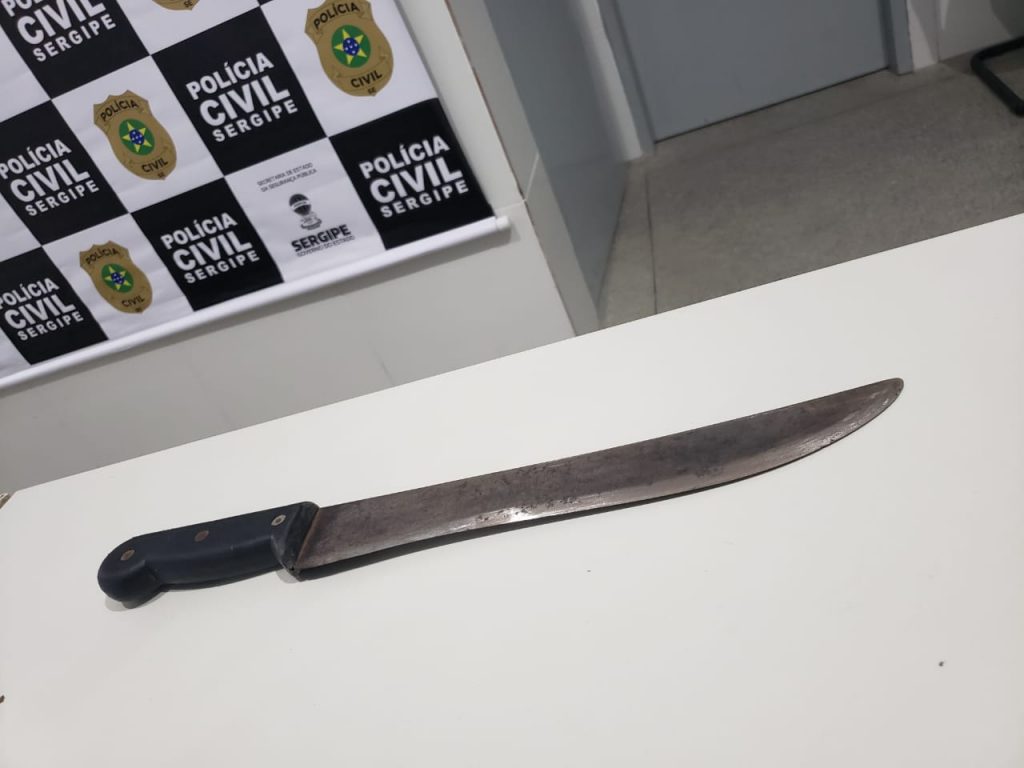 Na abordagem, Hunaldo foi apreendido com o facão que utilizava para ameaçar seus familiares. O infrator está preso e se encontra à disposição da Justiça.
