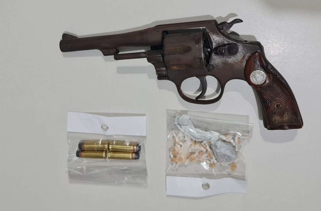 Imediatamente, foram realizadas ações de buscas na localidade, momento em que encontraram o suspeito. Com ele, foram apreendidos pedras de crack, um revólver calibre 32 e munições.