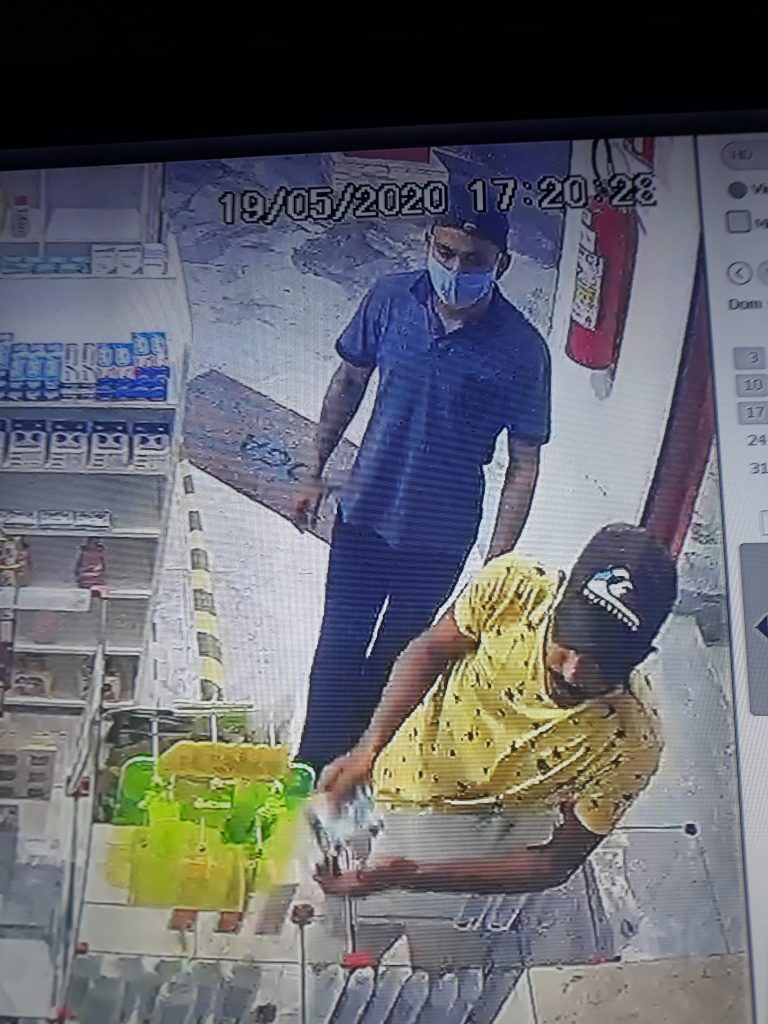 O último roubo feito por Edmilson ocorreu em uma farmácia do bairro Industrial. Ele e um comparsa foram flagrados pelas câmeras de segurança anunciando o assalto a funcionária do caixa. O comparsa que aparece nas imagens já foi identificado, porém não foi localizado e continua foragido. Quem tiver informações sobre o paradeiro do suspeito pode ligar para o Disque-Denúncia 181. O sigilo do comunicante é garantido.