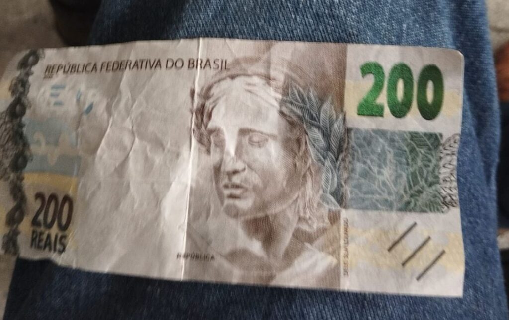 De acordo com as informações policiais, a equipe foi acionada para a ocorrência de repasse de notas falsas de dinheiro. Em diligências, uma mulher foi identificada com uma nota falsa de R$ 200.