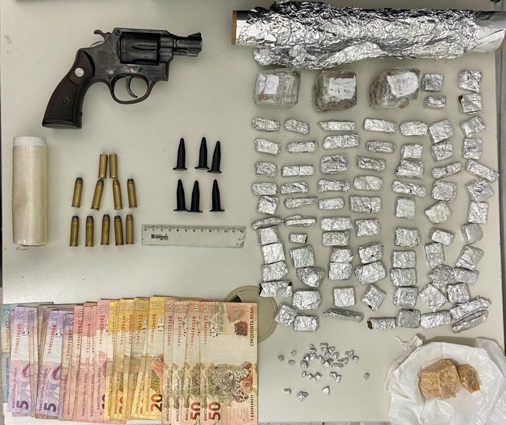 Além de drogas, foram apreendidos dinheiro e arma de fogo na tarde dessa quarta-feira, 2