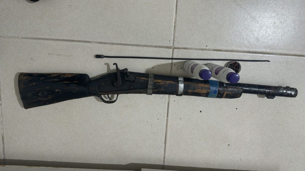De acordo com o delegado Paulo Nunes, o suspeito utilizava o armamento para ameaçar vizinhos. “Os policiais civis realizavam diligências, objetivando verificar informações preliminares de que um homem estaria de posse da arma de fogo e se utilizando dela para ameaçar vizinhos e realizar disparos para o alto. Chegando na residência do suspeito, este permitiu a entrada dos policiais e indicou espontaneamente a localização de uma arma tipo espingarda de fabricação caseira”, informou o delegado.