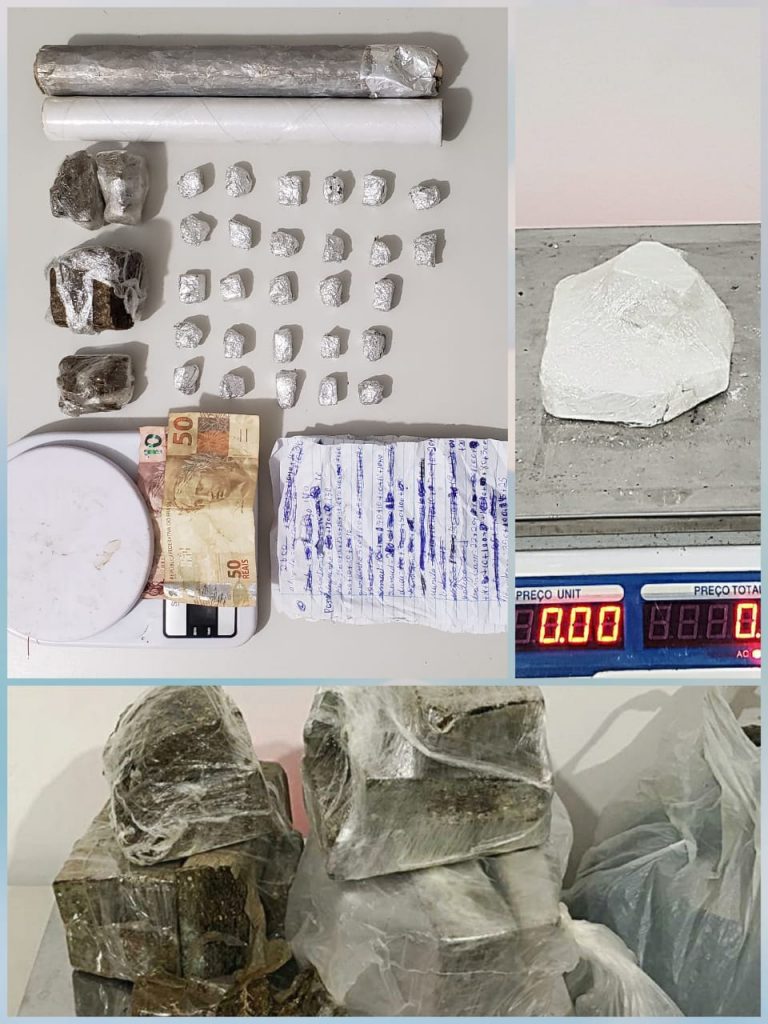 Segundo o delegado Hugo Leonardo, Rubens Bezerra Marinho, de 25 anos, foi preso no Bairro Santa Maria, Rua 29. Com ele, havia 27 porções de maconha prensada prontas para a venda, mais quatro tabletes maiores, além de balança de precisão e anotações de contabilidade do tráfico. Rubens já responde a processos criminais anteriores.