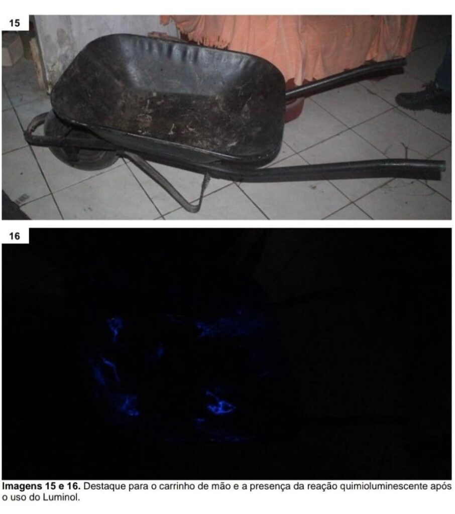 No imóvel, conforme detalhou o perito, não havia sinais de crime. “Aparentemente, estava tudo limpo, como se nada tivesse acontecido. Mas, com o uso de lanternas específicas, identificamos áreas com potencial de conter vestígios e aplicamos o reagente. O luminol reagiu principalmente em um carrinho de mão, que, segundo a investigação, poderia ter sido utilizado para transportar o corpo”, detalhou Charles Vargas.