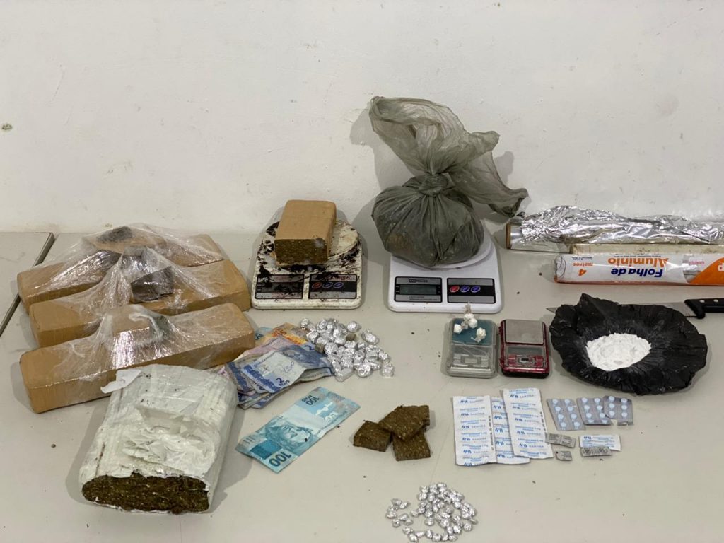 A partir dos pontos identificados, os policiais cavaram e encontraram os entorpecentes. Em poder de Erica, uma policial ainda encontrou 51 pedras de crack que estavam escondidas sob suas vestimentas íntimas. Ao todo foram apreendidos cerca de 5kg de maconha, 51 pedras de crack, cocaína, medicamentos de uso controlado, quatro balanças digitais e demais materiais utilizados para acondicionar os entorpecentes.