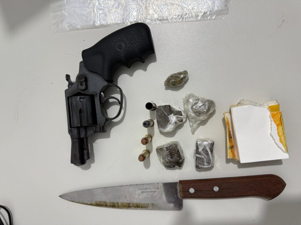 No imóvel foram apreendidas a arma utilizada pelo suspeito, munições e porções de maconha. O material foi encaminhado para a delegacia para os procedimentos legais.