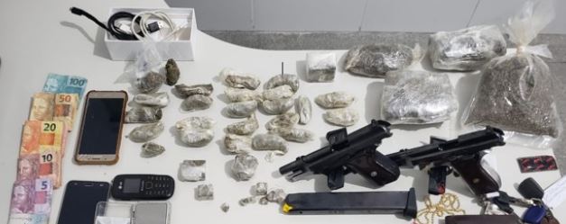 Com os suspeitos foram apreendidas duas pistolas calibres .380 (com três carregadores); 19 munições calibre .380; oito de calibre 9mm e quatro de calibre .38; além de 916 gramas de maconha. Na ação policial também foram apreendidos a quantia de R$ 731,50, balança digital e dois veículos, sendo uma motocicleta e um carro.