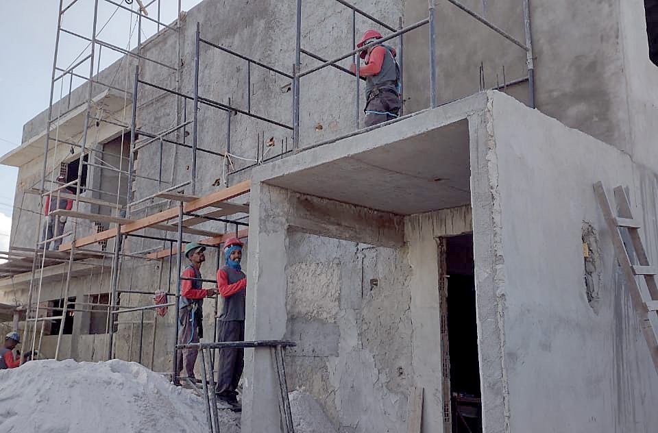 Dos 234,41m² referentes à área da reforma e nos 341,07 m² da ampliação, já foram realizadas a fundação e estrutura, elevação de paredes, laje do pavimento superior, escada, cobertura, reboco interno e contrapiso. Atualmente, os profissionais estão concluindo o reboco externo, o revestimento cerâmico das paredes, as instalações elétricas e hidrossanitárias e aplicando o piso cerâmico, de modo que o percentual já realizado é de 65%.