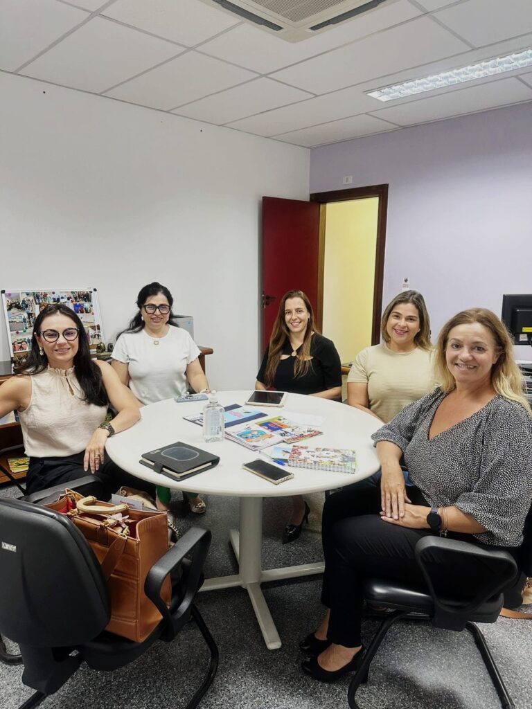 Estiveram reunidas a delegada Mariana Andrade de Amorim, coordenadora-geral do Acorde; Maria Luiza Foz Mendonça, juíza coordenadora do Cejusc e membro do Nupemec; Carla Maria Franco Lameira Vitale, chefe de Divisão Operacional do Nupemec; Rosana Freitas, coordenadora de Polícia Civil da Capital; e Cátia Emanueli, assessora técnica da superintendência da Polícia Civil.