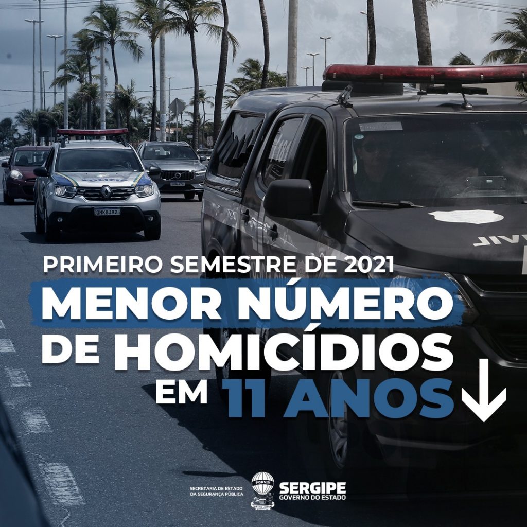 Ainda conforme os dados da Coordenadoria de Estatística e Análise Criminal, mensalmente, o estado apresentou o menor número de homicídios desde setembro de 2010. O mês de junho de 2021 encerrou com o registro de 41 homicídios. Ao passo que setembro de 2010 terminou com a contabilização de 38 crimes. Em recorte semestral, num intervalo de pouco mais de uma década, entre 2021 e 2010, Sergipe apresentou uma retração de 9,9% nos homicídios.