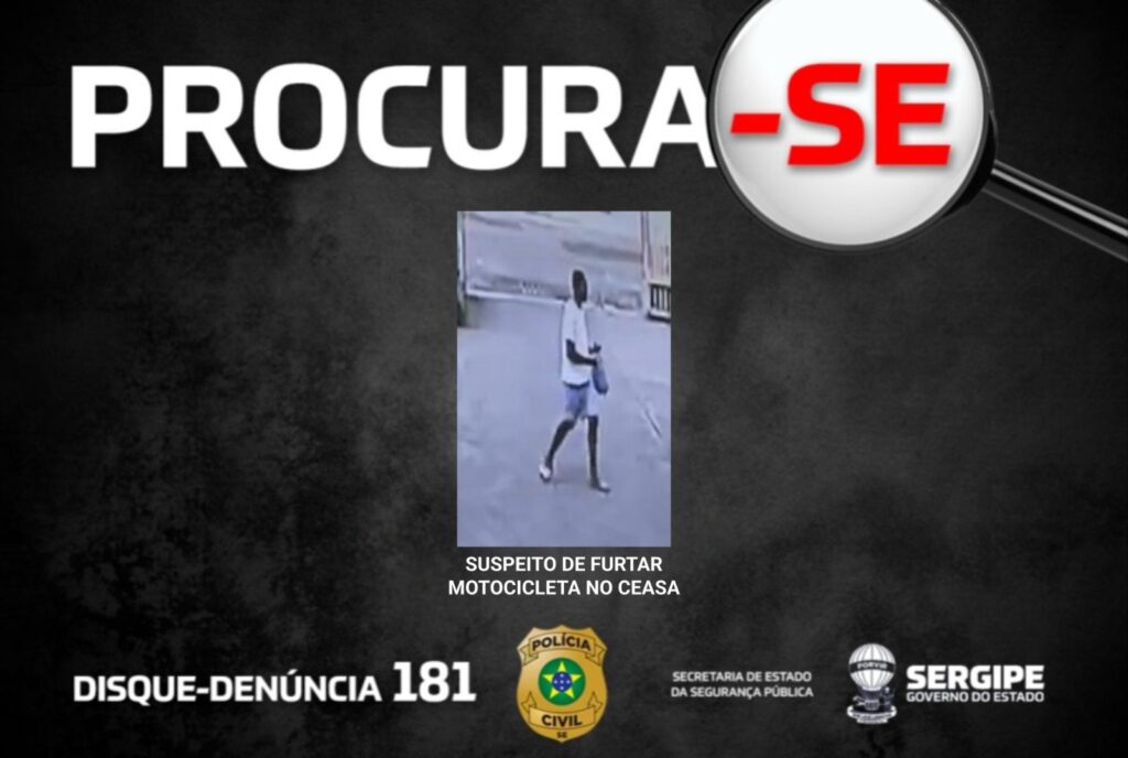 A Polícia Civil de Sergipe, por meio do Departamento de Roubos e Furtos de Veículos (DRFV), divulgou, nesta quinta-feira (28), imagens de um homem suspeito de furtar uma motocicleta no Ceasa de Aracaju. O crime ocorreu na última segunda-feira (25), por volta das 14h48.