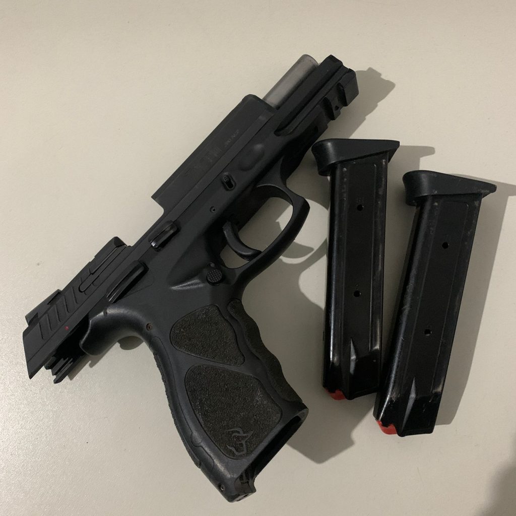 Com o homem, foi apreendida uma pistola 380, com uma munição e nove em um carregador. O caso foi encaminhado à delegacia.