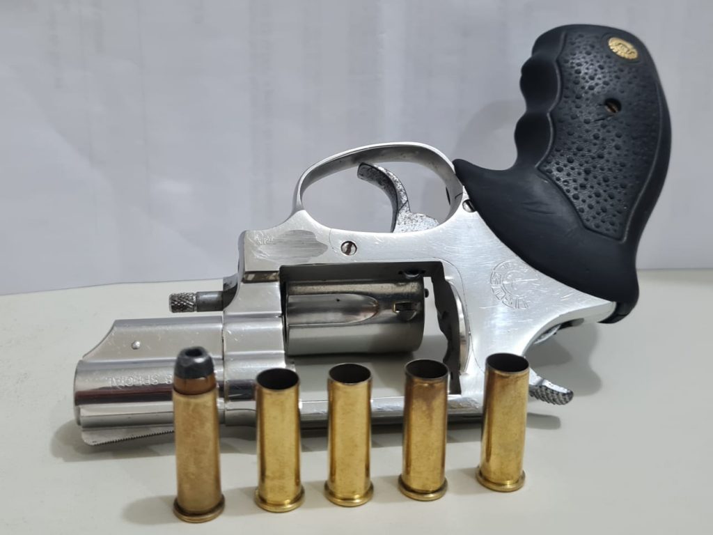 O flagrante aconteceu no mercado de Capela, quando a equipe de policiais encontrou o suspeito sob posse de um revólver de calibre .38, com a numeração raspada, após efetuar uma série de disparos na via pública. No tambor da arma havia uma munição intacta e quatro deflagradas.